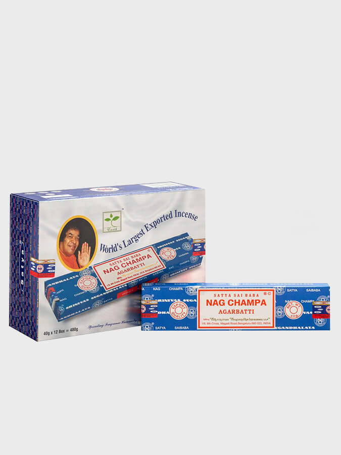 • Satya Nag Champa – 12 boxes 40g of Incense.