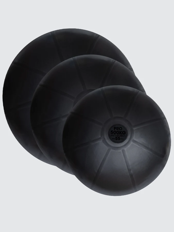 The 500kg Studio Pro Swiss Balls are made from very thick and durable PVC. They can bear over 500kg in normal use — although laboratory testing has shown they can bear a static load of over 1.5 tons. In the event that the stability ball is punctured, the anti-burst technology will ensure that they deflate slowly and safely. The inflation of a Swiss Ball can be adjusted with a Swiss Ball Pump — not exceeding the stated diameter. Swiss Balls come in various sizes to accommodate different heights, exercise needs, and stability level — with smaller diameters typically intended for shorter individuals. However, the choice also depends on the type of exercise being performed.
