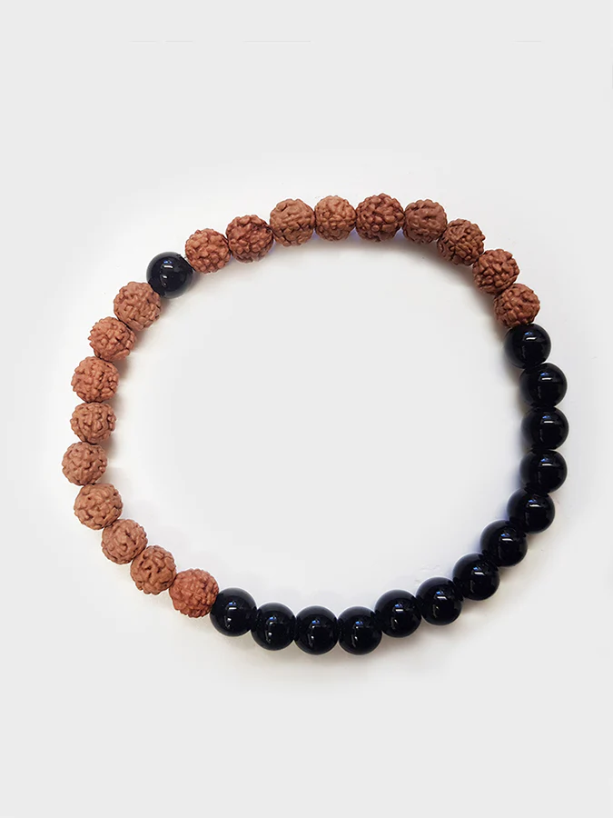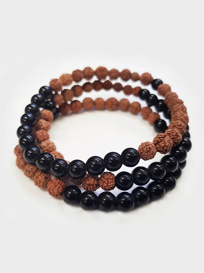 Yoga Studio Rudraksha With Black Star Mala Bead Bracelet